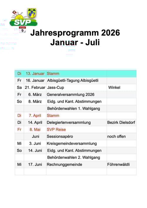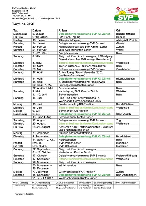 Termine SVP Kt. Zürich