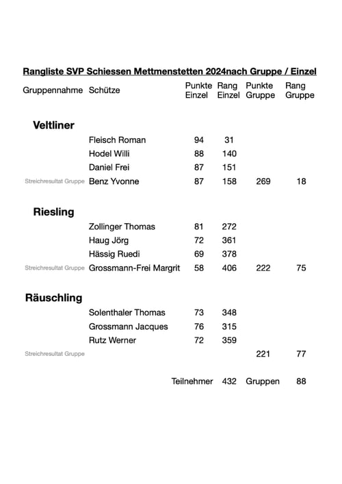 Rangliste 41. SVP Schiessen Mettmenstetten
