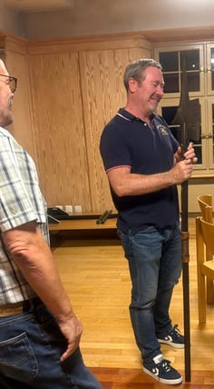 Der Präsident überraschte Thomas Mattle mit einer hölzernen Medaille, in der er ihn für seine Arbeit als Gemeinderat ehrte. Als zusätzliche Gabe bekam Thomas eine Hellebarde mit den Worten „Für einen strammen SVP-ler der geeignete „Stock“ für auf deinen weiteren Weg zum Stützen und Schützen unseren Idealen Werte“.